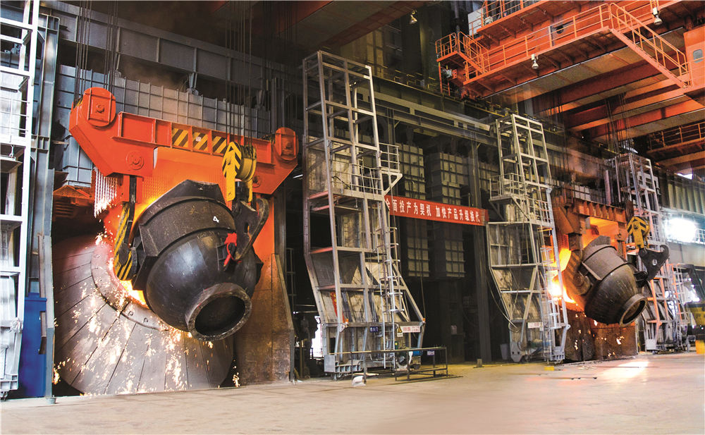 煉鋼系統(tǒng)擁有1300噸混鐵爐一座、120噸雙工位KR脫硫裝置一座、120噸頂?shù)讖?fù)吹轉(zhuǎn)爐兩座、60噸頂?shù)讖?fù)吹轉(zhuǎn)爐兩座、120噸LF精煉爐四座、120噸RH精煉爐兩座、60噸LF精煉爐四座、合金熔化爐兩座、60噸VD精煉爐兩座,全球弧形半徑最大,Φ500mm~Φ1300mm的特殊鋼大圓坯連鑄機,合金鋼小方(圓)坯連鑄機,合金鋼大方(圓)坯連鑄機(引進(jìn)瑞士康卡斯特),八機八流、七機七流、六機六流、五機五流連鑄機各一臺,具備年產(chǎn)500萬噸鋼的生產(chǎn)能力。